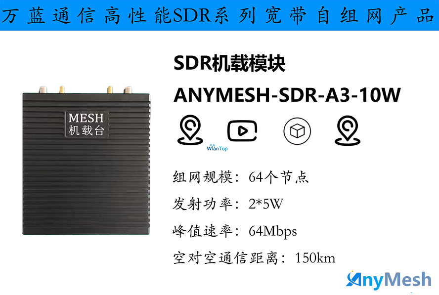 ANYMESH-SDR-A3自组网机载台100-150公里级无人机集群